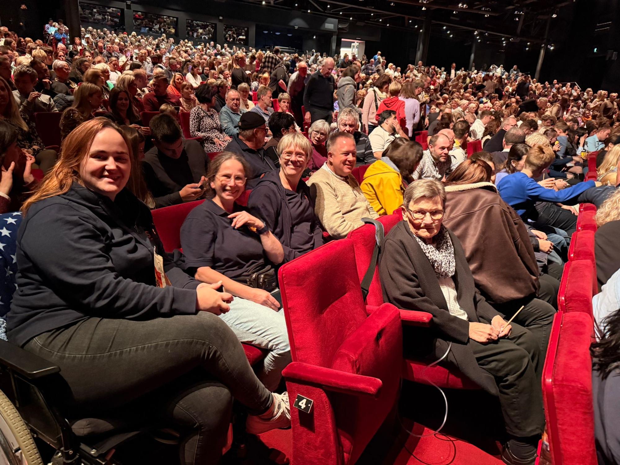 Mit Sturmtief Joshua im Nacken fuhren wir zum Albertinen-Hospiz nach Norderstedt, wo wir von unserer Fahrgästin Karin und ihrer Schwiegertochter Sylvia sehnsüchtig und aufgeregt erwartet wurden. Durch den typischen Hamburger Verkehr fuhren wir im Stop-and-go auf die andere Elbseite. Das Musical König der Löwen war angesagt. Wir waren recht früh da, sodass wir vor der Vorstellung noch einen kleinen Snack zu uns nehmen konnten. Karin genoss ihr Eis, dann wurden wir durch den Nebeneingang zu unseren Plätzen geführt.
