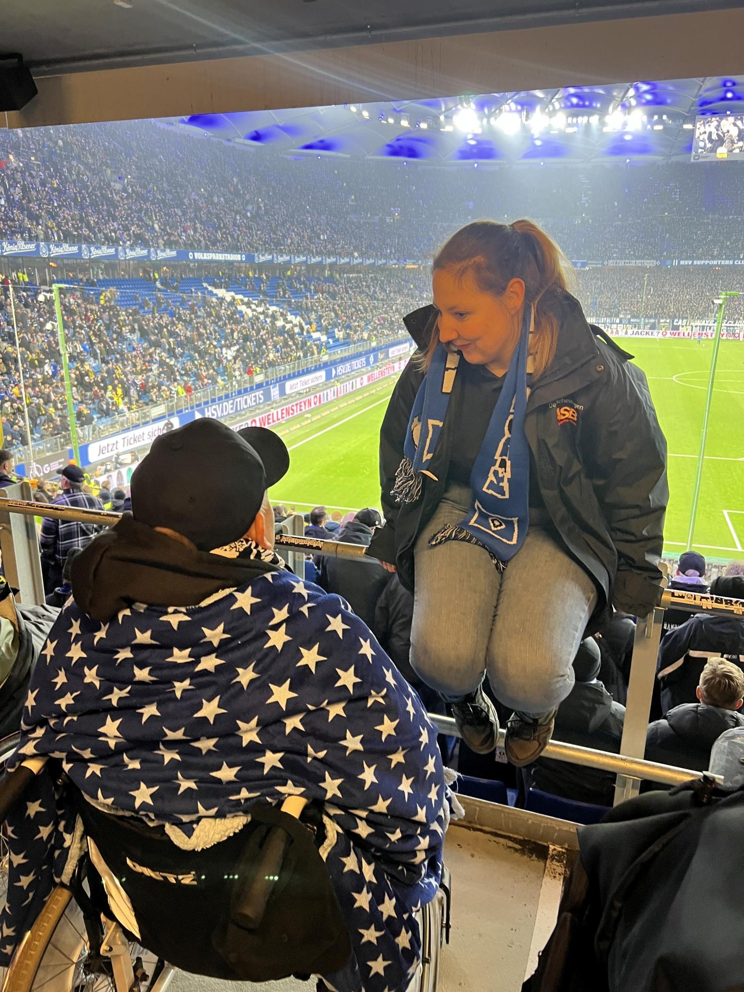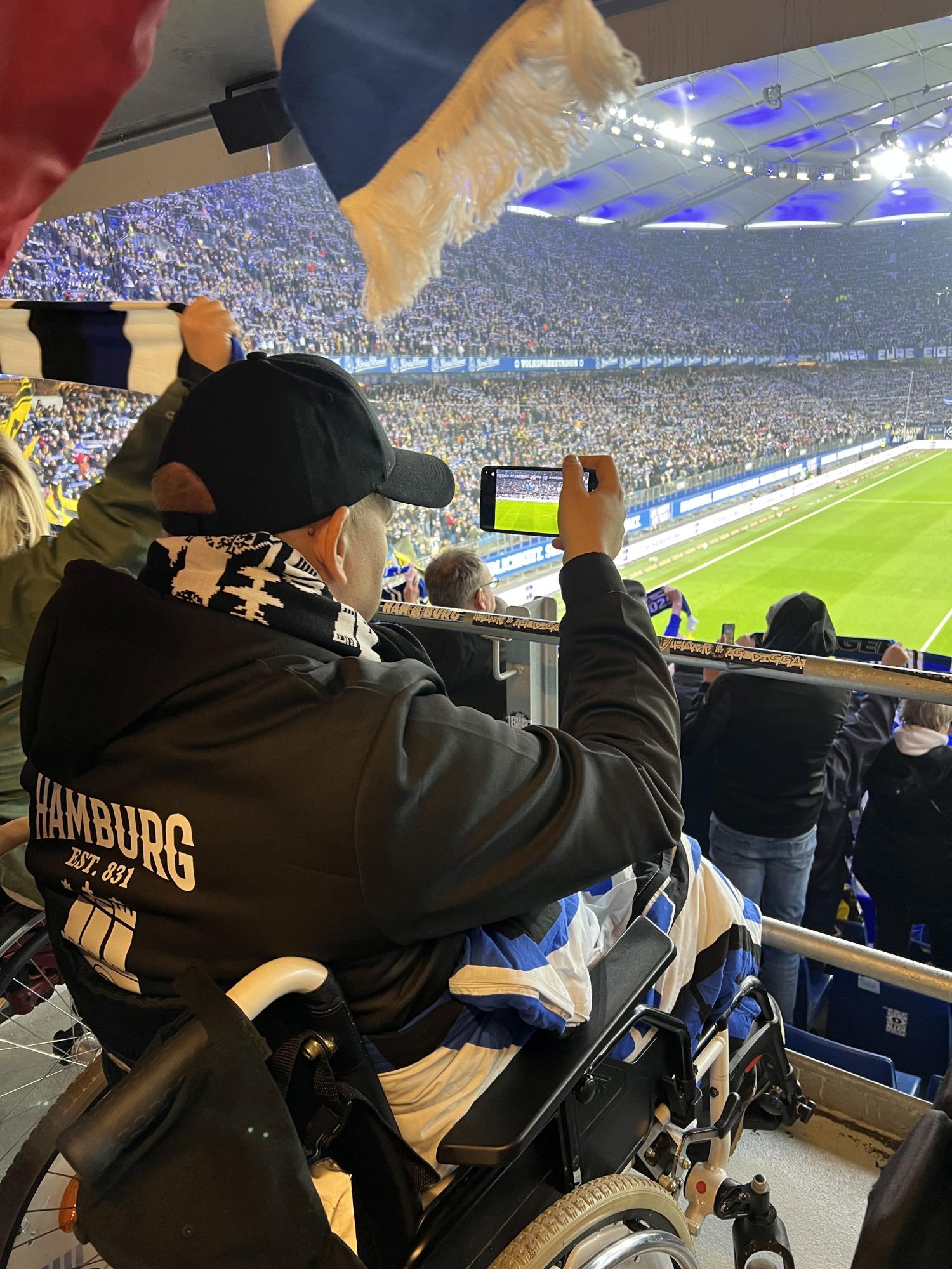 Dennis, eingefleischter HSV-Fan aus Bad Segeberg, hat sich schon die ganze Woche auf das ausverkaufte Spiel gegen die Borussen aus Dortmund gefreut. So machten sich die Wunscherfüller Alex und Lars auf den Weg nach Bad Segeberg, um mit Dennis und seinem Bruder Nils am Samstagnachmittag die Rothosen anzufeuern. Der Wünschewagen wurde natürlich mit HSV-Bettwäsche vorbereitet, sodass die Vorfreude auf ein tolles Spiel groß war. Vor dem Spiel wurden wir sehr nett von dem HSV-Integrationsteam empfangen. Dennis bekam einen Stadionsitz, der von allen Spielern des HSV signiert wurde. Eine tolle Erinnerung und ein tolles Geschenk! Dann der Anpfiff: Dennis und Nils feuerten kräftig, gestärkt nach einer Stadionbratwurst, ihren HSV an. Ein ausgeglichenes Spiel bis zur 64. Minute! Doch dann kassierte der HSV den Gegentreffer. Aber die HSV-Kicker hielten sich wacker und konnten in der 7. Nachspielminute der zweiten Halbzeit einen Ausgleich erzielen. Die Stimmung im Stadion und bei Dennis und Nils war dann natürlich überwältigend. Eine richtig tolle Atmosphäre! Mit diesem guten Gefühl machten wir uns nach dem Schlusspfiff auf den Rückweg nach Bad Segeberg. Sicher feierten die beiden Brüder dann noch den mehr als verdienten Ausgleich ihres HSV.