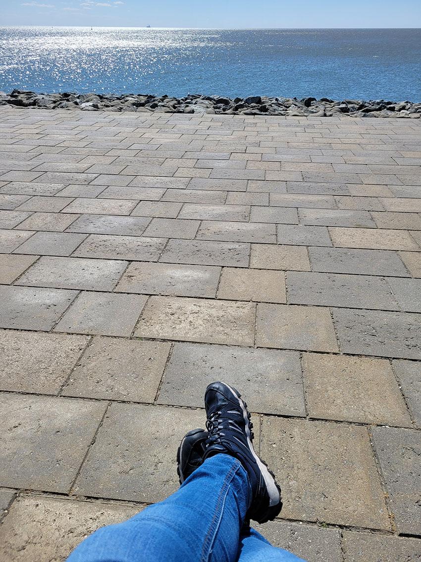 Anschließend ging es auf dem Deich weiter zur Perlebucht, einer kleinen Nordsee-Lagune. Eine Möglichkeit, mit dem Rolli ganz dicht ans Wasser zu kommen, war schnell gefunden und so standen die Wegeners im Nu im kühlen Nass und genossen sichtlich den Moment. Pläne wurden geschmiedet, doch noch einmal gemeinsam mit dem Enkel hierher zu kommen. Man konnte den wieder aufkeimenden Lebensmut förmlich greifen; ein berührender Moment für Vera und mich.