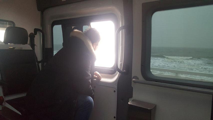 Frisch gestärkt wurde das restliche Tagesprogramm in Angriff genommen: am Strand das Meer und die Brandung bestaunen, die Promenade von Westerland, das Luxus- und Promidorf Kampen mit seiner berühmten Whiskymeile. Auf der Rückfahrt Richtung List sorgten die noch größeren Dünen erneut für Begeisterungsstürme. Herr S. verglich sie immer wieder mit den Bergen in seiner türkischen Heimat und sprach viel darüber. Er genoss die reine und frische Meeresluft und fasste sein Befinden in einem Wort zusammen: „Hammerglücklich.“ Bei türkischer Musik wurde im Wünschewagen gesungen und gelacht, beim Blick aufs Meer und den Horizont oft innegehalten und sich in den Arm genommen. Der schwerkranke 52-Jährige war an diesem Tag so fit, dass sogar auf den Strandrollstuhl verzichtet werden konnte, den uns der Sylt Tourismus-Service dankenswerterweise kostenfrei zur Verfügung gestellt hat. Zwischen den einzelnen Stationen konnte er sich auf der bequemen Trageliege ausruhen und seine Kräfte schonen.